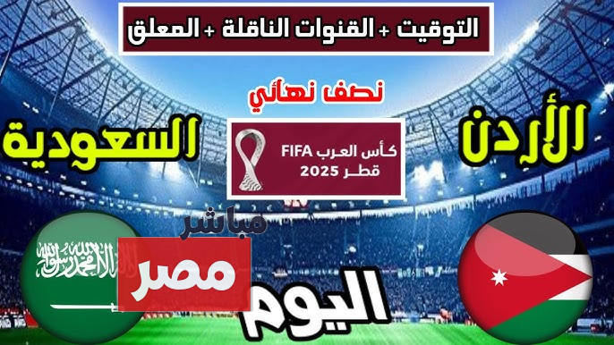 يخوض منتخب الأردن مساء اليوم الاثنين 15 ديسمبر 2025 مواجهة قوية أمام المنتخب السعودي في نصف نهائي كأس العرب 2025، حيث تنطلق المباراة عند 7:30 مساءً بتوقيت القاهرة، و8:30 مساءً بتوقيت السعودية وقطر والأردن، و9:30 مساءً بتوقيت الإمارات، وذلك على ملعب استاد البيت.