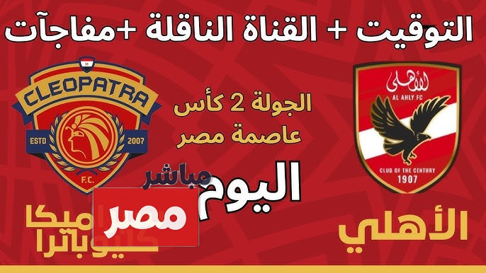 يخوض نادي الاهلي اليوم الجمعة الموافق 19 ديسمبر الجاري في مباراة من العيار الثقيل أمام نادي سيراميكا كليوباترا ضمن في إطار الجولة الثانية بدور المجموعات من بطولة كأس عاصمة مصر 2025- 2026، حيث ستنطلق صافرة بداية المباراة عند الساعة الثامنة مساءً بتوقيت القاهرة وفي تمام الساعة التاسعة مساءً بتوقيت السعودية، وفي تمام الساعة العاشرة مساءً بتوقيت الامارات، وتقام المباراة على ملعب المقاولون العرب.