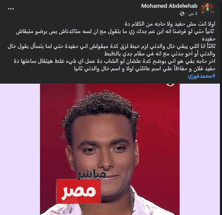 على الجانب الآخر، سارع المنتج محمد عبدالوهاب، الذي تربطه صلة قرابة مباشرة بالموسيقار الراحل محمد فوزي، إلى الرد عبر صفحته على موقع الفيسبوك على مزاعم المتسابق وتوضيح الحقائق بشكل قاطع، قائلاً: “أولاً أنت مش حفيد ولا حاجة من الكلام ده”.