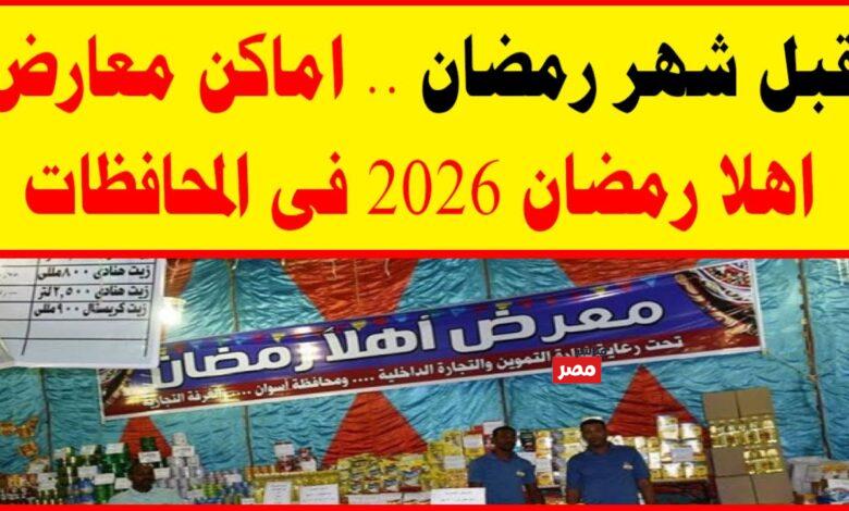 باقي أيام قليلة فقط على دخول شهر رمضان الكريم، حيث إنه مع اقتراب الشهر الفضيل تصاعد البحث بين المواطنين، خصوصًا محدودي الدخل، عن خريطة اماكن معرض اهلا رمضان 2026، وتتيح هذه المعارض في المحافظات المصرية طوال الشهر تخفيضات تصل إلى 30% على السلع الغذائية الأساسية مثل الزيت، السكر، الأرز، البقوليات، اللحوم، الدواجن، والياميش، مقارنة بأسعارها في الأسواق التجارية العادية، من خلال موقعنا مباشر مصر ستتعرف على تفاصيل هذا الموضوع.