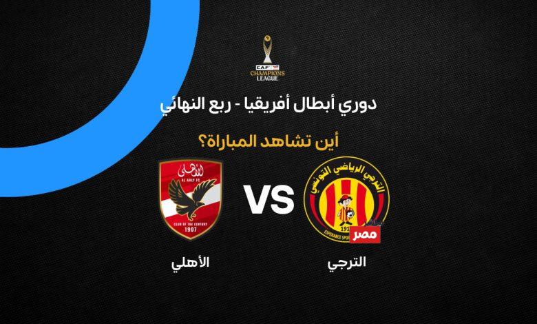بحث متتالي من الجماهير العربية لمعرفة القنوات الناقلة لمباراة الأهلي والترجي، وسيستضيف ستاد رادس مساء اليوم الاحد الموافق 15 مارس 2026 هذه المواجهة النارية بين أقوي فريقين في القارة السمراء، في منافسات ربع نهائي دوري أبطال افريقيا لكرة القدم موسم 2025-2026، وسيطلق الحكم صافرة بداية اللقاء في تمام الساعة 11.00 مساء بتوقيت القاهرة 12:00 صباحاً بتوقيت مكة المكرمة، وحصلت شبكة قنوات (بين سبورت) القطرية علي حقوق نقل المباراة في الشرق الاوسط وشمال افريقيا، بالاضافة إلي قناة الوطنية التونسية الارضية الناقلة للمباراة في تونس فقط، وجاءت القنوات الناقلة للمباراة المرتقبة اليوم بين الفريقين علي النحو الاتي: