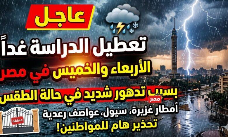 عاجل| حقيقة تعطيل الدراسه الأربعاء والخميس 2026 بعد تحذيرات الأرصاد.. هل تشمل القرار طلاب الجامعات؟