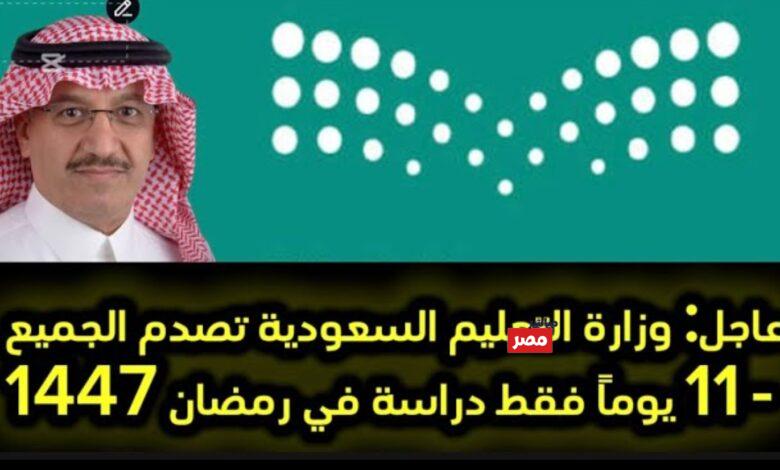 11 يوم دراسة.. مواعيد الدراسة في رمضان 2026 بالسعودية وفقًا لوزارة التعليم