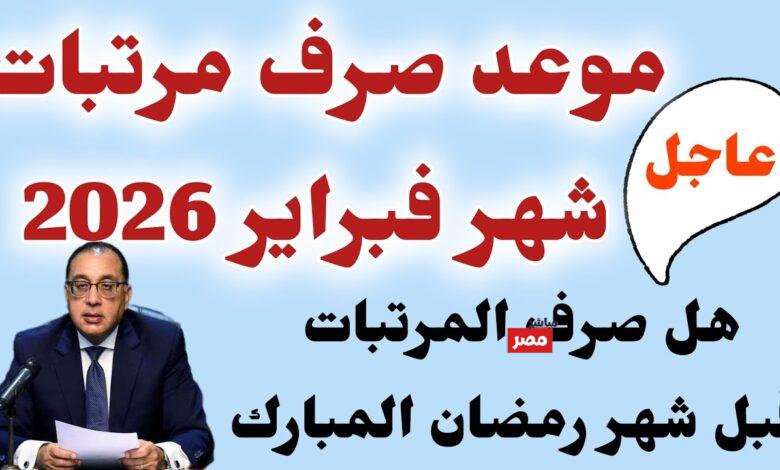 مع اقتراب حلول شهر رمضان المبارك يزداد اهتمام المواطنين حول معرفة مواعيد صرف مرتبات شهر فبراير 2026 لا سيما العاملين في القطاعين الحكومي والخاص، وبالتعرف على موعد صرف مرتبات شهر فبراير 2026 وفقًا للمواعيد الجديدة التي أعلنتها وزارة المالية، فيما يلي سنعرض لكم عبر موقعنا مباشر مصر كافة التفاصيل الخاصة بالمقالة.