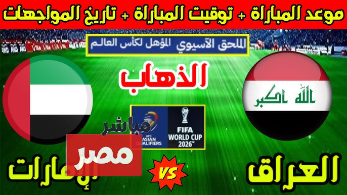 تتجه أنظار عشاق كرة القدم العربية نحو مباراة العراق ضد الإمارات المنتظرة، والتي تأتي ضمن التصفيات الآسيوية المؤهلة إلى كأس العالم 2026، حيث يسعى المنتخبان لتحقيق فوز ثمين يعزز من فرصهما في مواصلة المشوار نحو حلم المونديال، من خلال موقعنا مباشر مصر ستتعرف على جميع التفاصيل حول هذا الموضوع.